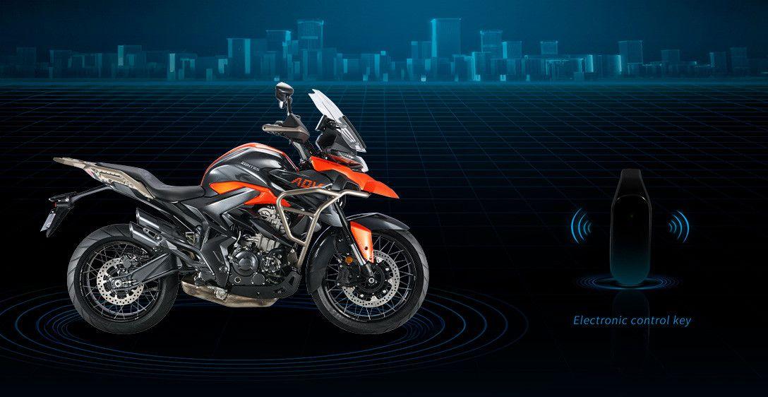 Com tecnologia de criptografia avançada O sistema de ignição sem chave 2.5 da Zontes é altamente seguro e conveniente, permitindo desbloquear a moto a uma distância de 1,5 m. É à prova d'água e pode ser usado mesmo quando a bateria está descarregada.
